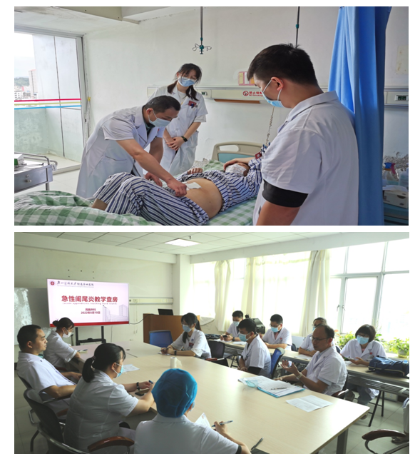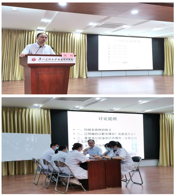 随后,胡明主任结合临床教学与教学管理工作经验,围绕“教学查房实务”、“如何开展教学病例讨论”进行了专题培训,按照广州医科大学的教学要求,完整地讲述了教学查房以及教学病例讨论的规范,分享与交流教学经验与技巧。此外,他针对一个普外科急腹症的病例进行了一次临床教学病例讨论演示,向老师们展示了整个实施流程,并进行了总结和评价。